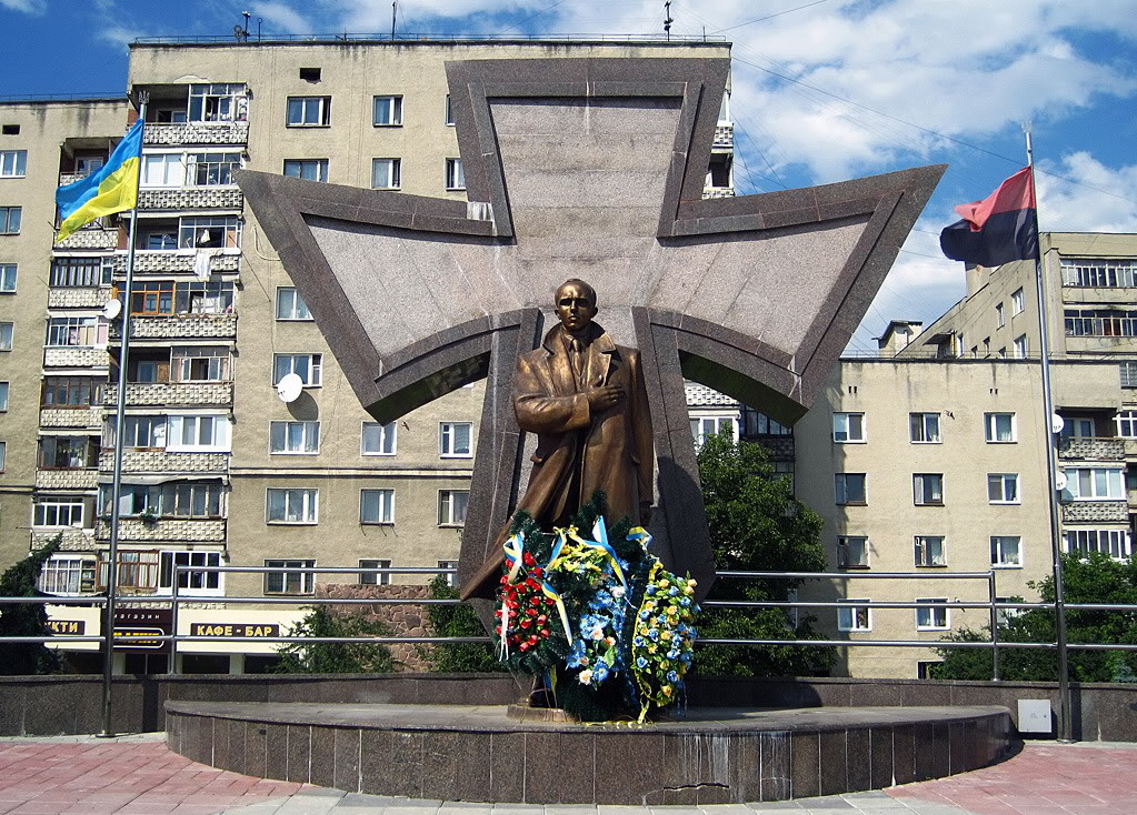 Якщо бути точним, то пам’ятник Степану Бандері стоїть не на його однойменній вулиці, а на Європейській площі, а вулиця там закінчується.
