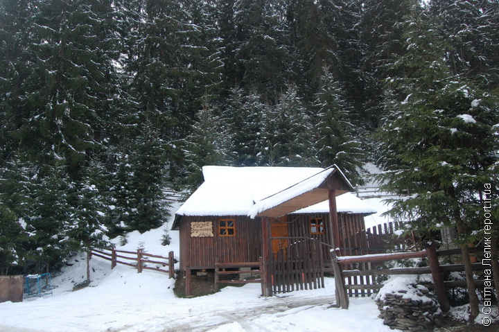 Аби більше пізнати її, прямуємо Жаб’євським потіком, так називається одна з верховинських вулиць, де й розташований незвичний музей гуцульської магії. Серед засніжених сосен сховалась дерев’яна хатка на підпорах. Ми на місці. Навколо порожньо. Ні душі. Раптом з альтанки, що поруч, виходить великий вгодований сірий кіт і підозріло дивиться на непроханих гостей своїми гірчичними очиськами. Бр… Моторошно.