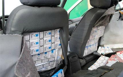 У спеціально обладнаному відсіку автомобіля останнього виявлено майже 6500 пачок цього товару білоруського виробництва без марок акцизного збору.