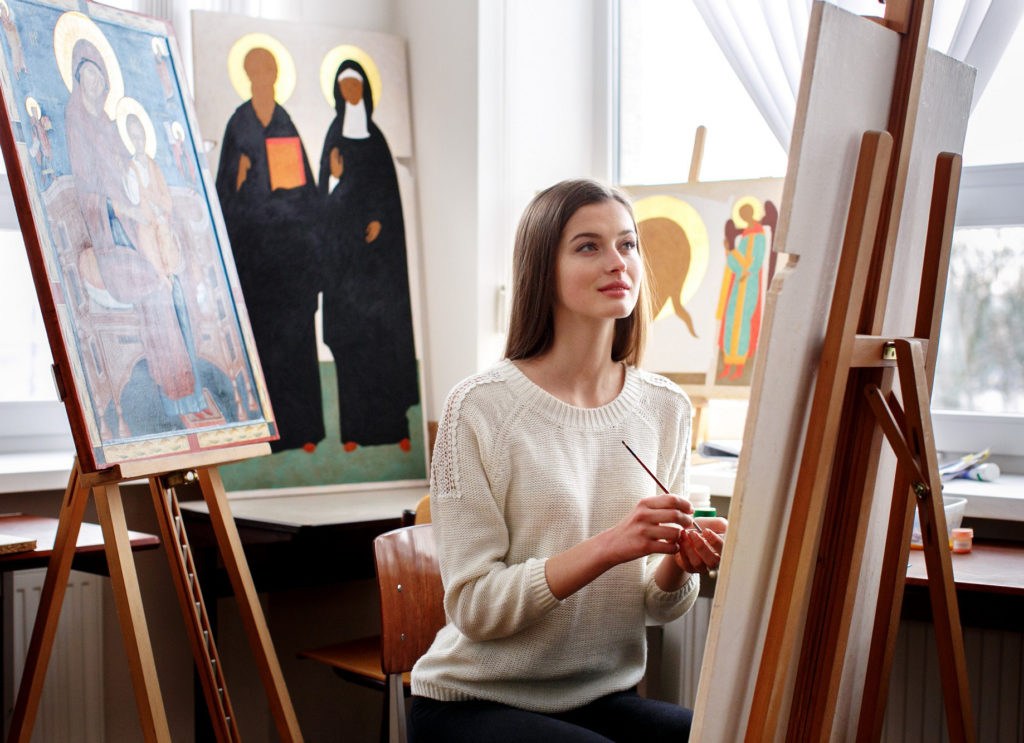 Кілька робіт робила на замовлення для клієнтів, але, в основному, це була моя навчальна програма, для мене було важливо розвинути свій власний стиль. Але коли переїхала в Мілан, у мене не було можливості писати по дереву, використовувати всі традиційні кроки, такі як левкас, темпера. І в Нью-Йорку це поки неможливо.