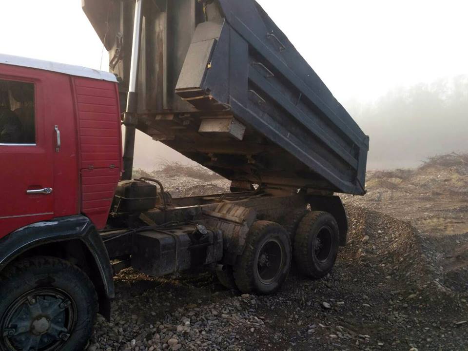 Місцевий мешканець вручну накидував у кузов вантажівки будівельний матеріал з річки.