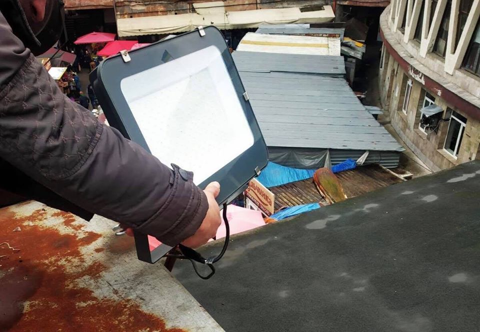 Фахівці Центрального ринку уже розпочали монтаж нових сучасних енергозберігаючих світлодіодних прожекторів потужністю у 200 W, які забезпечать підприємцям комфортні умови праці у темну пору доби.