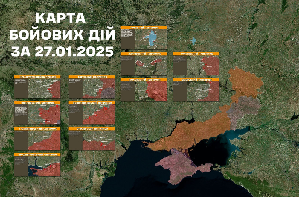 В понеділок, 27 січня противник завдав по позиціях українських підрозділів та населених пунктах 28 авіаударів, скинувши 60 КАБ. Крім цього, здійснив понад п’ять тисяч обстрілів, зокрема 87 - із реактивних систем залпового вогню та залучив для ураження 2411 дронів-камікадзе. Про це повідомили у ранковому зведенні Генштабу.