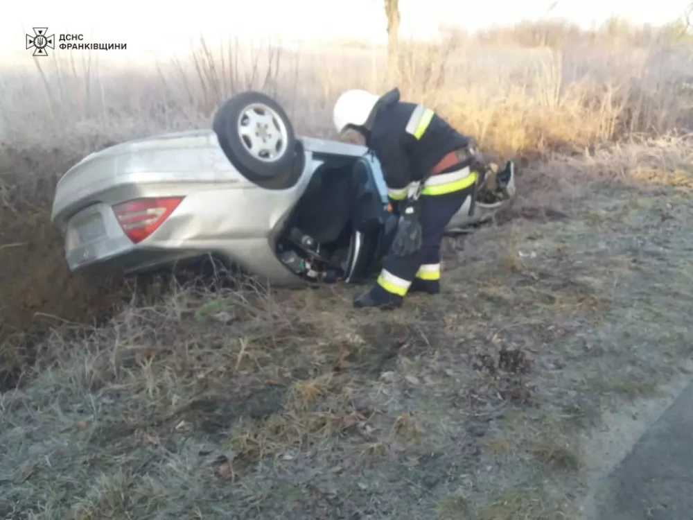 На Калущині автівка злетіла з дороги і перекинулась на дах (фотофакт)