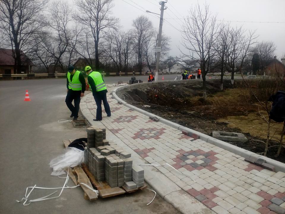"У стилі вишиванки майстри фірми ПБС облагороджують кільцеву розв'язку доріг в Королівці Коломийського району", - написав дорожник.