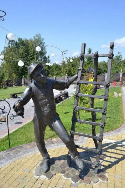 Тримає Лейба у своїй руці сливи, а драбиною, що є конструкцією пам’ятника, «повзе» хрущ. І сливи, і хрущ не прості, а – магічні.