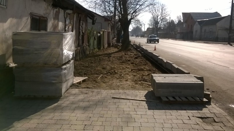 Наразі вже встановлено нову бордюрну лінію та проводяться підготовчі роботи для влаштування нового мощення.