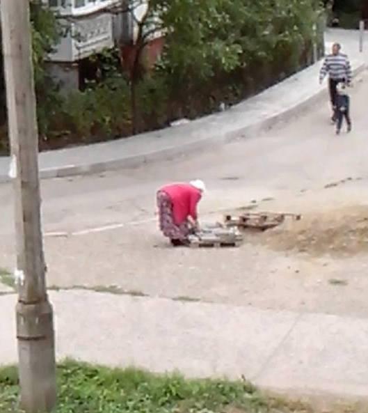 Сьогодні іванофранківці спостерігали як пенсіонерка крала бруківку в одному з спальних районів міста.