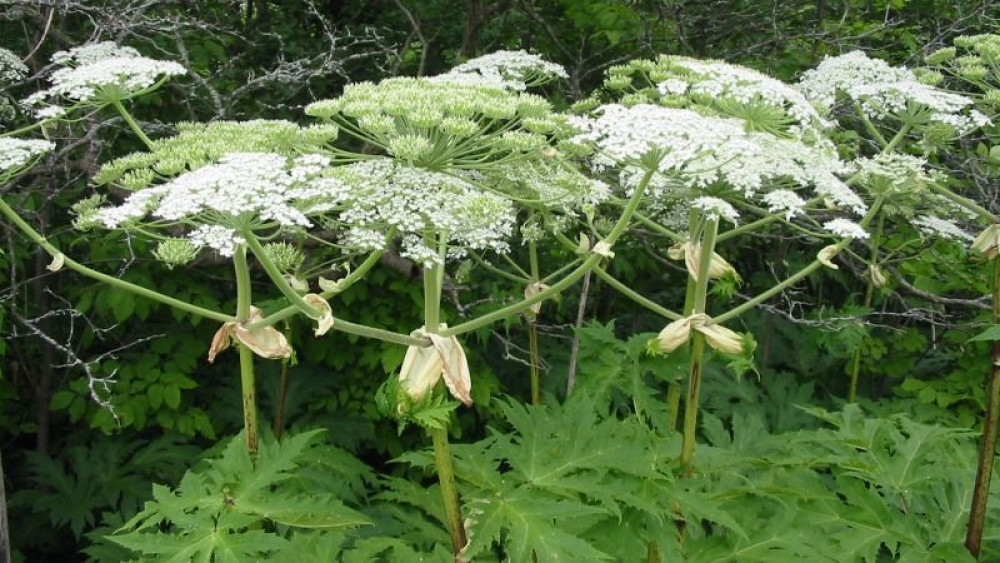 Борщівник Сосновського – багаторічна рослина родини зонтичних, сягає 2-3 метрів заввишки, має товсте порожнисте стебло та великі перисті листки.