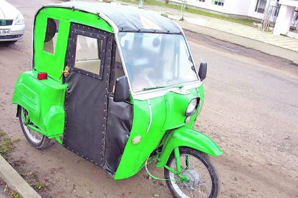 Транспорт довелося вдосконалити - спорудити двері з фанери, оббити дерматином. Кабіна необхідна дідусеві через хворі ноги. Він багато років їздив на роботу в райцентр на мотоциклі і поступово «відморозив» суглоби. Тепер ходити з важко, тому збирався купувати машину, але тут підвернувся німецький трьохколісник. Зараз пенсіонер не може натішитися техніці, адже витрата бензину у мотоцикла - 3 л на 100 км .