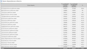 Найбільша явку в Івано-Франківській області продемонстрував Рогатинський район – 67,8%, де виборчі бюлетені отримав 23641 виборець із 34866 виборців в уточнених списках, інформує Рогатка.