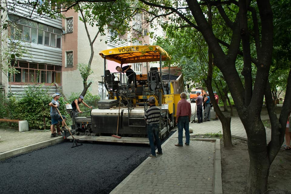 Роботи тут почали минулого року з благоустрою внутрішньої території: мережі освітлення, доріжки, основи під ліхтарі. Сьогодні асфальтували проїзд, починаючи від вул. Сахарова.