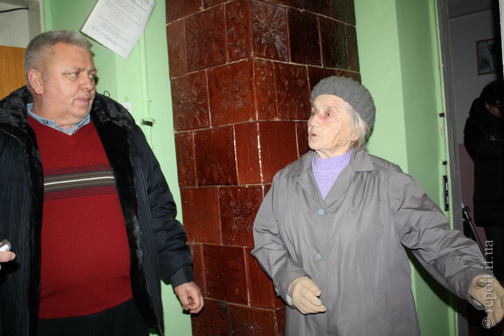 Сіре пальто, під колір – берет, пані Ольга спирається на руку сина, і з готовністю починає розповідати.