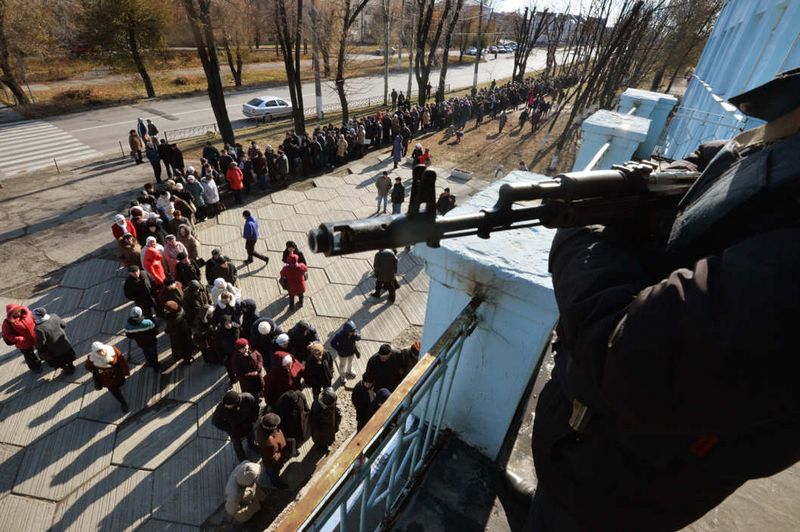 Символічна картинка з Луганська: «виборці ЛНР» голосують під дулом автомата