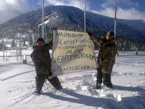 У мережі Facebook у групі ЄвроМайдан з'явилося фото, зроблене працівниками сніжно-лавинної метеостанції Пожежевська на Івано-Франківщині.