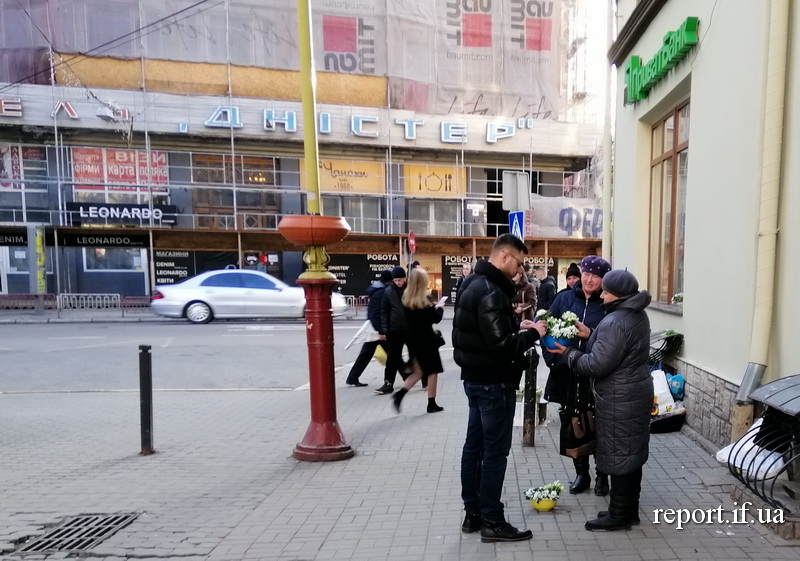 Продавців весняних квітів у Франківську знайти не важко. По всій стометрівці, на Вічевому майдані, біля Центрального ринку, а також біля базарів по районах через кожні кілька метрів стоять жінка або чоловік, біля яких – миска з первоцвітами. Коштує один букетик 20-30 грн. Охочих придбати не бракує. Продавці первоцвітів з’являються у Франківську ще з середини лютого, а до 8 березня їх більшає вдвічі, пише “Репортер“.