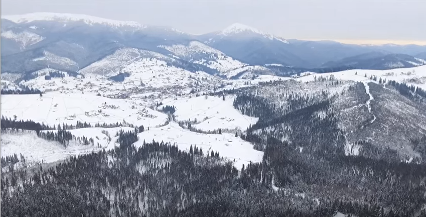 Неймовірну красу зимових Карпат показали з висоти пташиного польоту