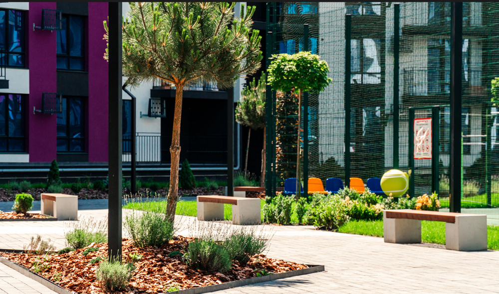 ЖК SKYGARDEN матиме велику площу озеленення – понад 30 тис. кв. м та найрізноманітнішу спортивну інфраструктуру: скейт-парк, поле для футболу та волейболу тощо.