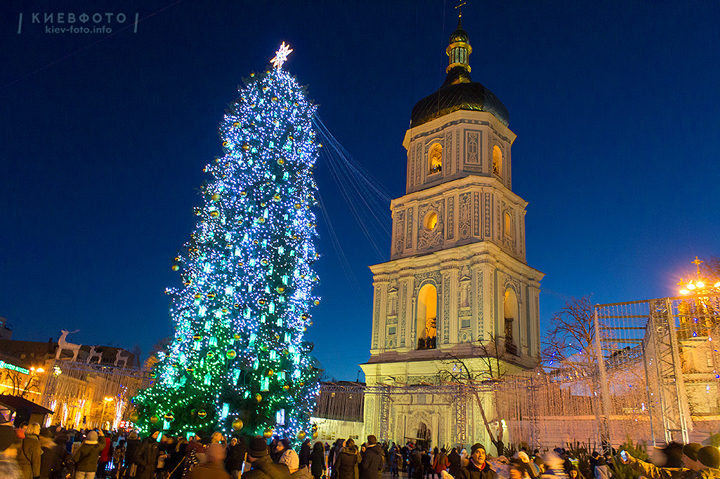 Головна ялинка України, встановлена на Софіївській площі, зайняла перше місце поміж європейських різдвяних ялинок.