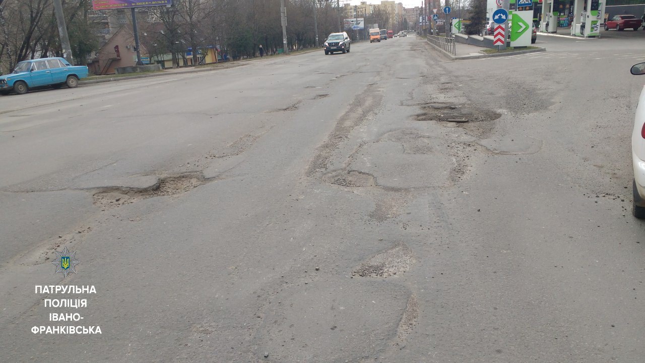 Задля безпеки всіх учасників дорожнього руху Патрульна поліція Івано-Франківська звертає увагу міської влади на стан дорожнього покриття та необхідність термінового виділення коштів на ліквідацію ямковості.