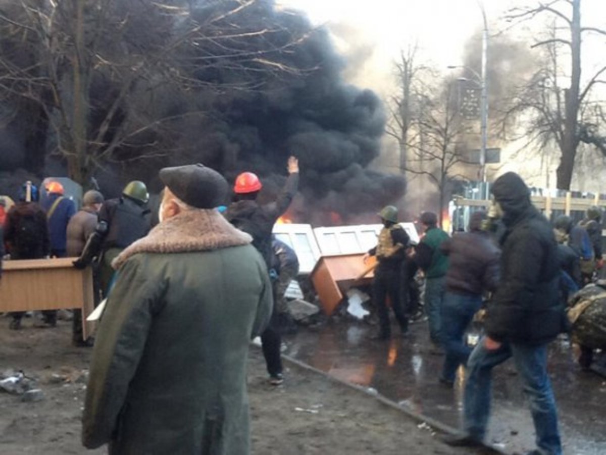 Спочатку силовики намагалися стримувати протестувальників і не підпускали їх до будівлі Ради. Але євромайданівці таки прорвали кордон міліції, у цей же час на вулиці Грушевського біля стадіону "Динамо" задиміли шини.