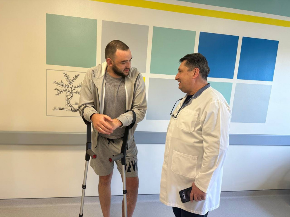 "Петро Яблінчук особливий для нас пацієнт, адже це перший захисник України, який потрапив до ЦМКЛ ще на самому початку повномасштабної війни і нашим лікарям вдалось його успішно пролікувати. У військового була важка мінно-вибухова травма лівої кінцівки і значне за площею пошкодження м’яких тканин", - зазначають у лікарні.