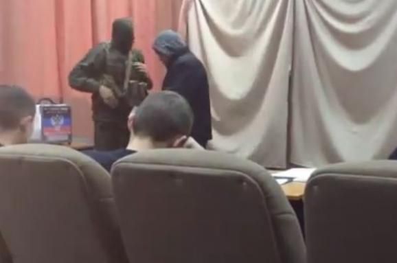 У мережі оприлюднили відео перебігу так званих "виборів" у "ДНР". Після виходу з кабінки для голосування автоматник в балаклаві перевіряє правильність вибору, і тільки після цього "бюлетень" вкидають до урни