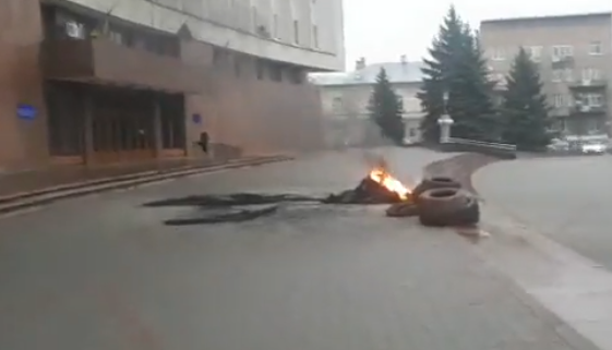 Через розгін "торгової блокади" в Івано-Франківську під адмінбудинком цілу ніч горіли шини.