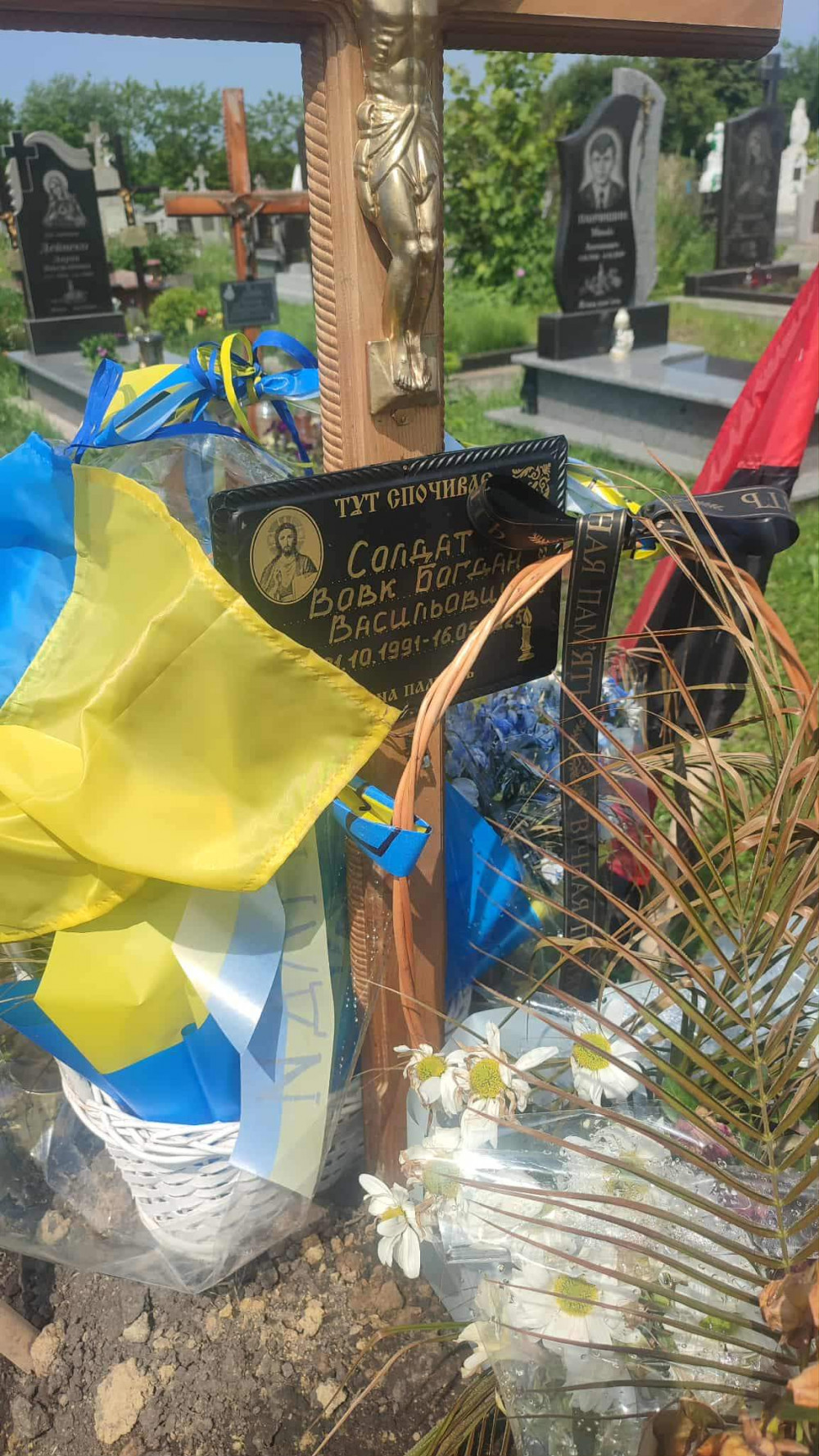 Волонтерка Ірина Кріпченко, яка родом із сусіднього села Семенівка, припускає, що з похованням бійця сталася помилка, яку потрібно виправляти, адже Богдан Вовк насправді живий.