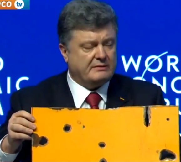 Президент України Петро Порошенко в рамках усесвітнього економічного форуму в Давосі продемонстрував елементи обстріляного бойовиками автобуса під Волновахою.