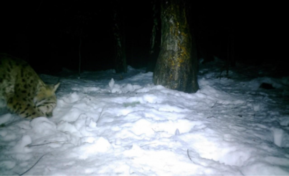 На фото: Активний самець рисі ID-4 досліджує територію Ужанського НПП взимку 2025-2026 (@ WWF-Україна)