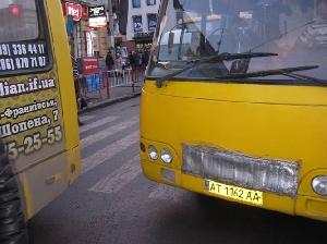 Наглядний приклад з учорашнього. Пішоходи чемно чекають зеленого світла (так буває, що не травляється «шарікових») і в момент, коли зелений сигнал загорається на «зебру» в’їзджає автобус (номер АТ 1162 АА), відчиняє двері й починає вигружати-загружати пасажирів. Між ним і тим автобусом, що позаду, проходу не залишається взагалі, а між тим, що стоїть попереду, прохід заледве півметра.