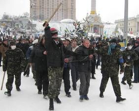 На Майдані тим часом тривога. Загони молодих хлопців у касках і з дерев’яними кийками чи навіть звичайними палицями швидко прямують у бік барикад. Але «беркутівці» не пхаються туди, де можуть і самі зарватиѕ Люди поступово заспокоюються і чекають на віче, присвячене Дню соборности.