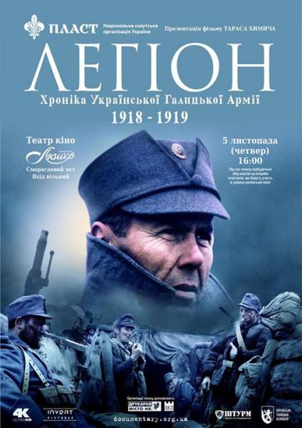 5 листопада о 15:30 з ініціативи Івано-Франківського осередку Пласту – Національної скаутської організації України та ГО «Українська Галицька Асамблея» у холі театру кіно «Люм’єр» відбудеться прес-конференція авторів нового документально-ігрового фільму «ЛЕГІОН. Хроніка Української Галицької Армії. 1918 – 1919».