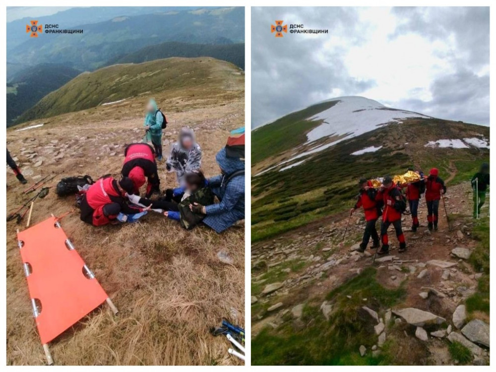 "Вчора в другій половині дня до рятувальників звернулась жителька Калущини та повідомила про те, що під час спуску з гори Говерла по зеленому маршруті вона травмувала ногу, самостійно продовжити рух не може і потребує допомоги рятувальників. Ворохтянські гірські рятувальники прибули до місця знаходження постраждалої жінки 1984 року народження, надали домедичну допомогу та транспортували її до підніжжя гори, де передали медикам", - йдеться у повідомленні ДСНС.