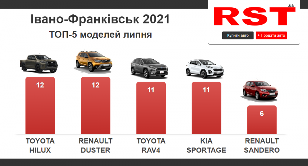 Найпопулярнішою маркою у регіоні була Toyota. За місяць придбали 35 таких автомобілів на суму 1 млн доларів. Toyota Hilux і Renault Duster отримали найбільшу кількість продажів у регіоні. Крім них часто купували Toyota RAV4.
