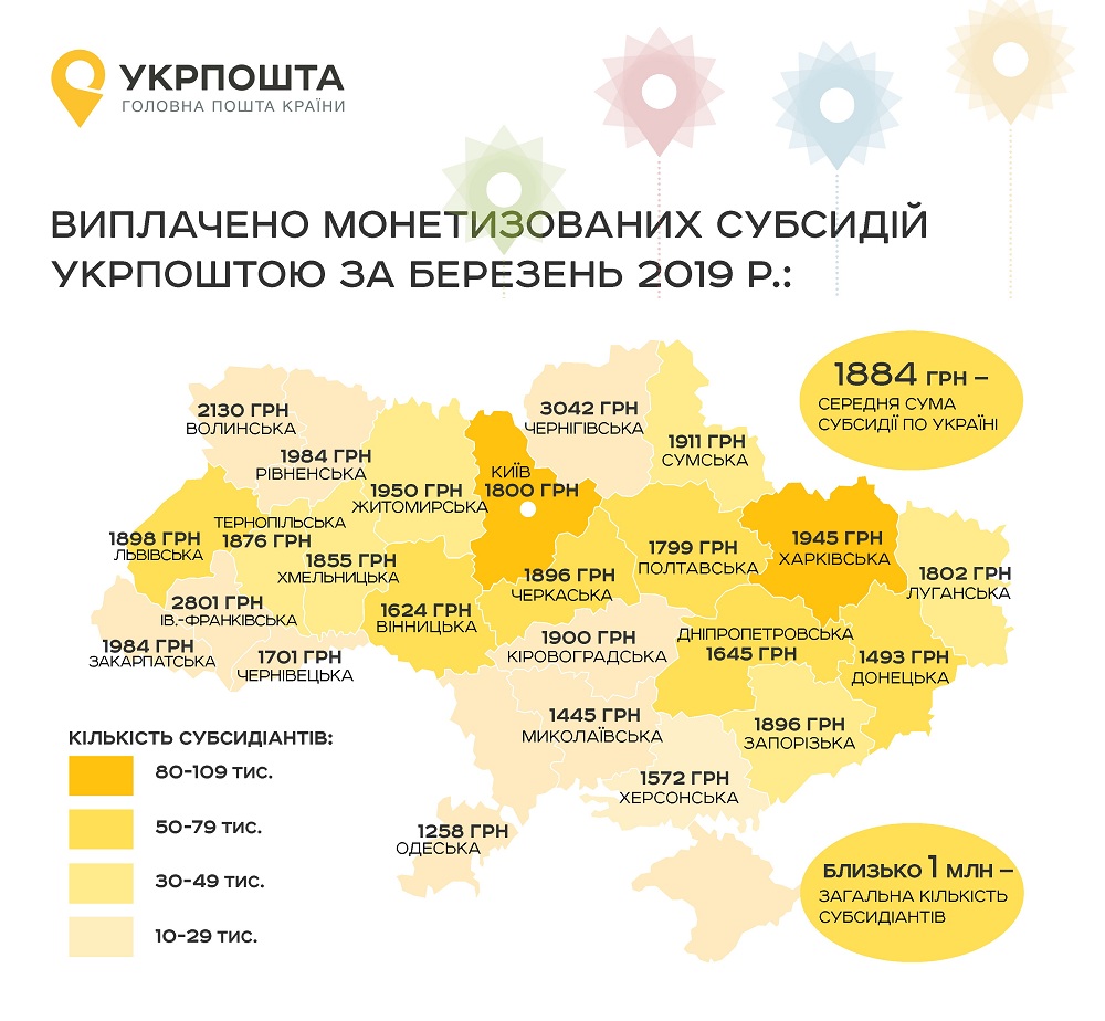 АТ «Укрпошта» у березні виплатила 1,9 млрд грн монетизованих субсидій на оплату комунальних послуг пенсіонерам, які отримують пенсію через поштові відділення. 75,4 млн грн – мешканцям Івано-Франківщини.