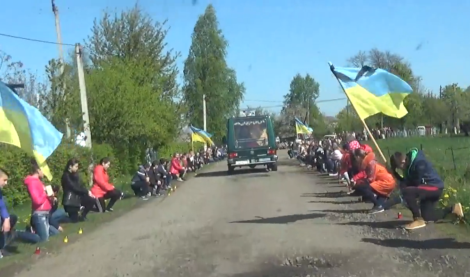 Прикарпатці на колінах зустріли загиблого в АТО героя
