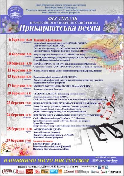 З 6 по 29 березня в обласній філармонії щорічний фестиваль "Прикарпатська весна"!