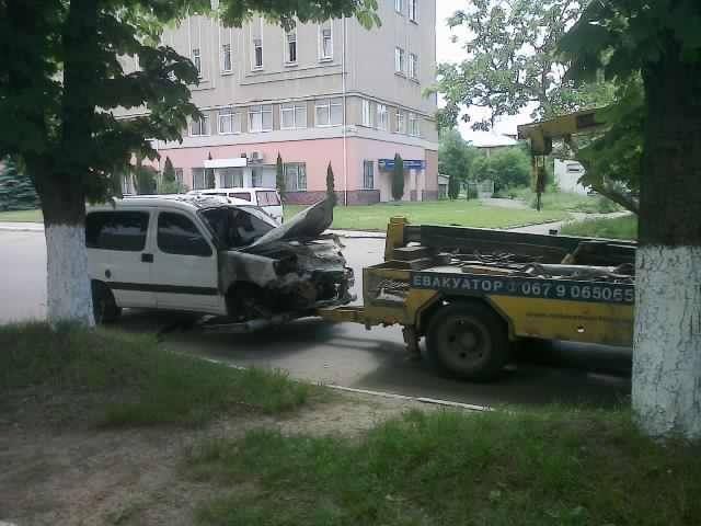 Активісти вирішили привезти спалене авто під УМВС на вул. Сахарова. Але в останню мить Хімік передумав.