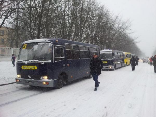 Автобуси з внутрішніми військами, які прорвали блокаду у Василькові станом на 11:13 вже заїхали до Києва.