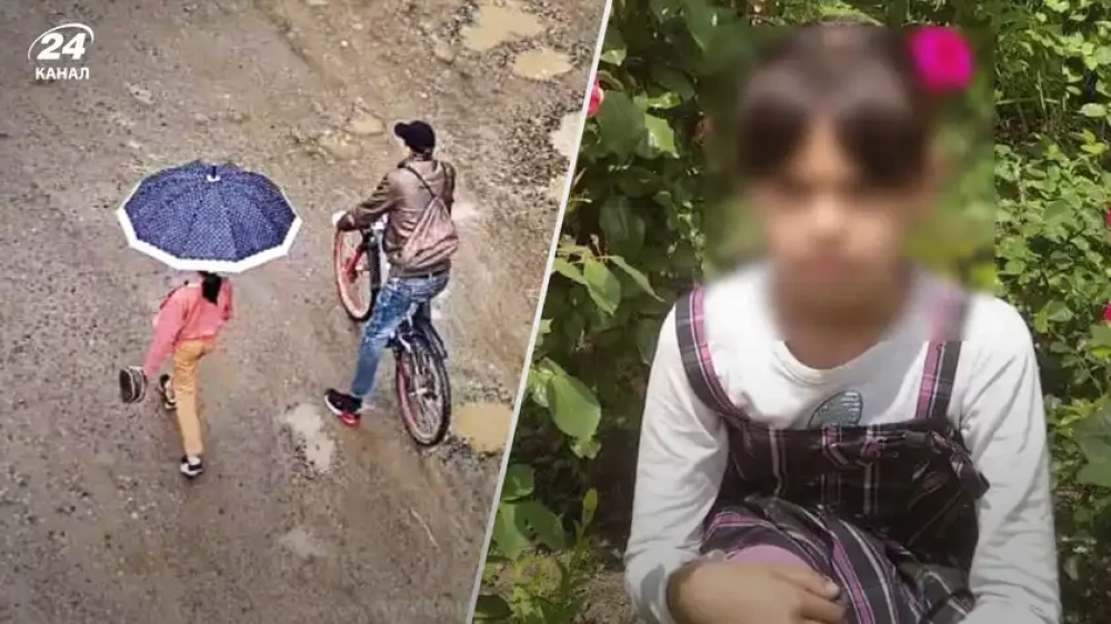 На камерах відеоспостереження видно, як дівчинка під парасолькою йде пішки, а поруч велосипедом їде той самий родич. За даними поліції, чоловік запропонував дитині зрізати шлях через кущі і таким чином заманив її в безлюдне місце.