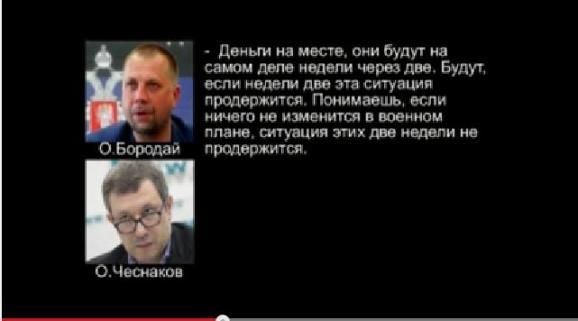 Бойовики визнають, що переспективи у терорестичної організації досить погані. Підтверджуються сварки між ватажками групировок, а також підтримка сепаратистів підприємцями. Також у розмові оголошуються суми, які отримують ватажки банд.