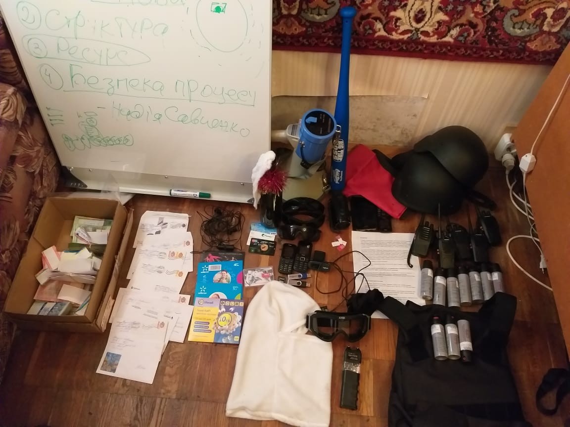 В офісі та за місцем проживання трьох найбільш активних учасників групи провели обшуки та затримали чоловіка на ім’я Євген Моринець, він же «Біла Балаклава».