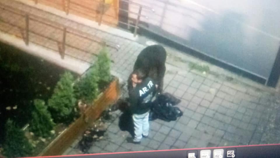Камери відеоспостереження зафіксували, як вночі двоє чоловіків крадуть туї на нещодавно облагородженій території позаду стоматкорпусу.