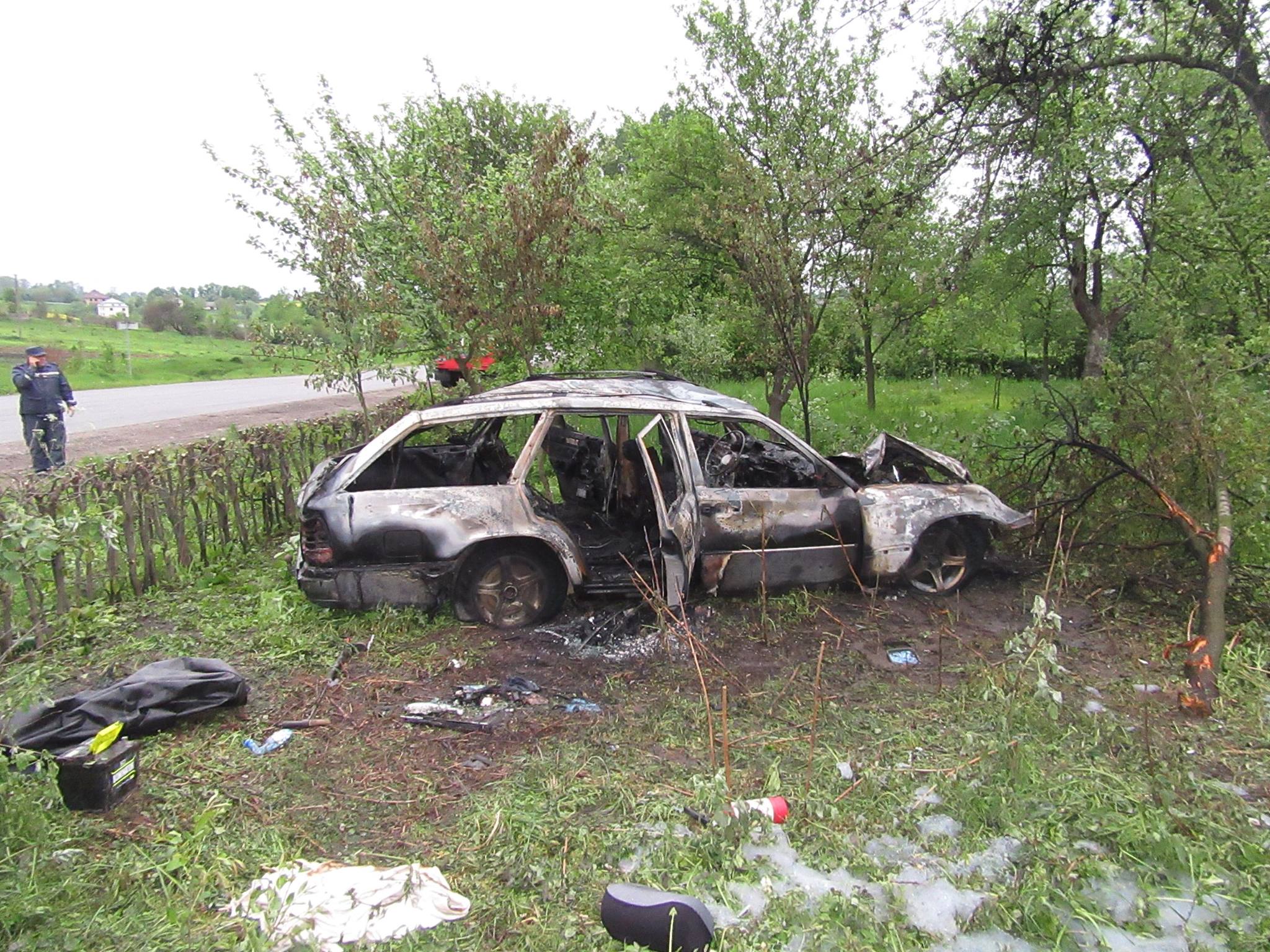 Автомобіль «Мерседес-Бенц С220» під керуванням 26-річної жительки смт. Отинія з’їхав з дороги в кювет, де перекинувся, а потім вдарився в дерево і загорівся.