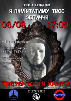 Сьогодні, 8 серпня, о 17.00, у вільному просторі STANTSIYA (вул. Незалежності, 4З) відбудеться презентація роману Поліни Кулакової «Я пам´ятатиму твоє обличчя».