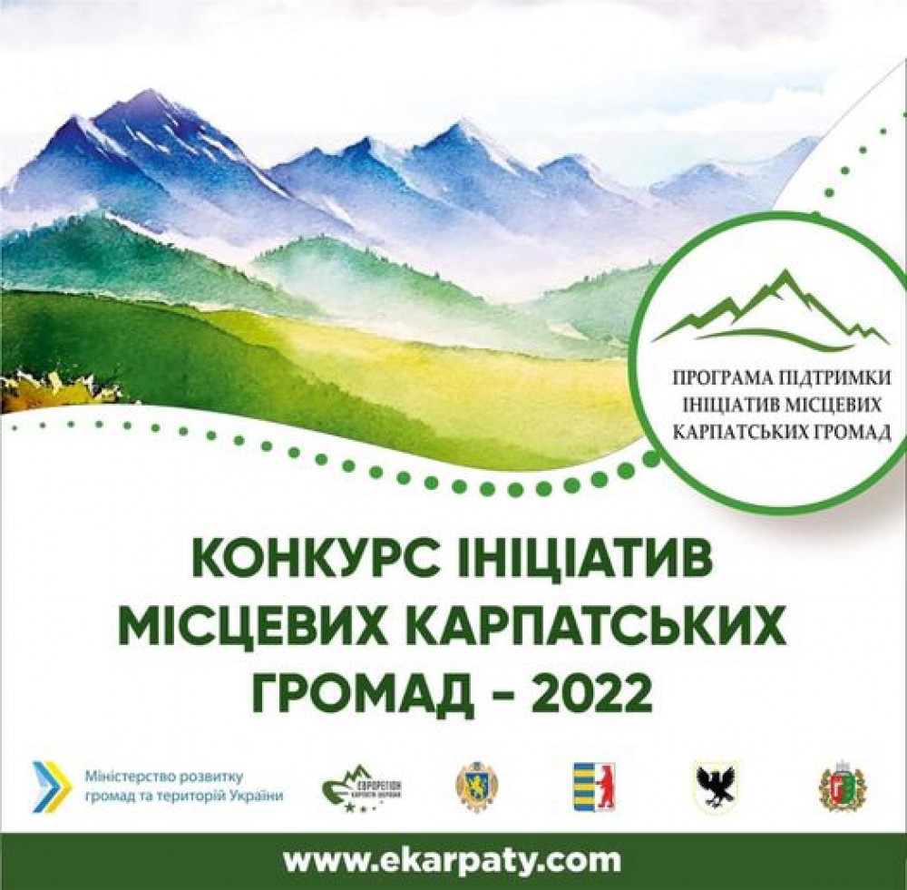 ГО «Асоціація органів місцевого самоврядування «Єврорегіон Карпати – Україна» у партнерстві з Міністерством розвитку громад і територій України, Львівською, Закарпатською, Івано-Франківською, Чернівецькою обласними державними адміністраціями і обласними радами 13 жовтня оголосила про старт Конкурсу ініціатив місцевих карпатських громад – 2022.
