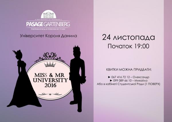 24 листопада в Пасажі Гартенберг відбудеться свято краси і грації Mr_Miss_university 2016.