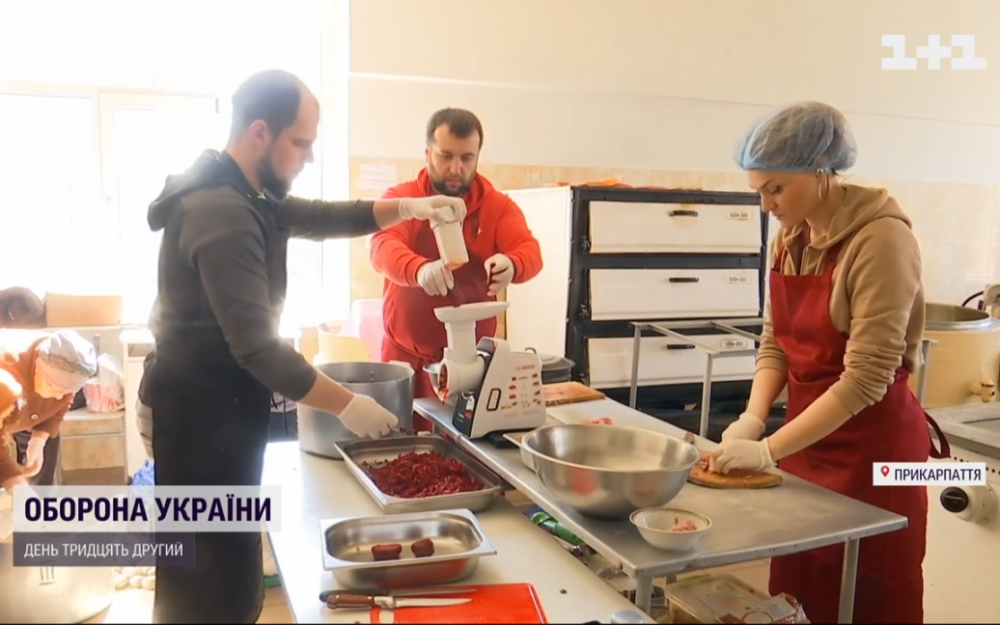 Тим часом у Коломиї на кухні пораються працівниці місцевих музеїв. «2 роки мінімум вона стояти буде. Навіть у польових умовах, бо проходить сильну термічну обробку - при температурі 110», - розказують про свої страви волонтерки.